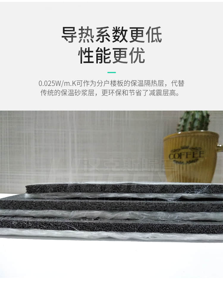 具有隔音好,防水防潮,無毒環保,隔熱保溫,回彈力好,重量輕,使用壽命長等特點,是解決住宅噪音問題的專業隔音產品,是一種新型節能環保材料。