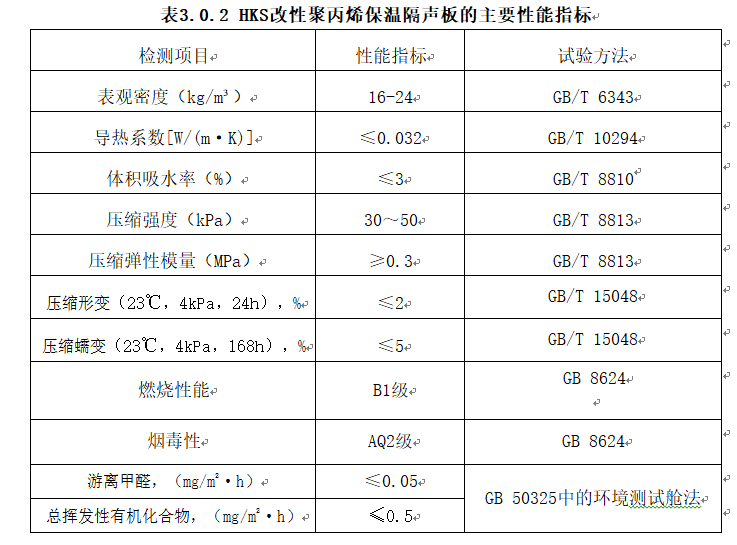HKS改性聚丙烯保溫隔聲板性能指標(biāo)